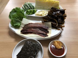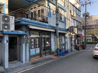 10時に予約してあったが、暗くてまだ店の人は来ていない感じ。なのでうろうろ外観を撮り、そして扉の貼り紙を撮っていたとき、自動ドアが開いてびっくり。あれ?と中をのぞくと、奥のドアが開いてアジョシ登場。