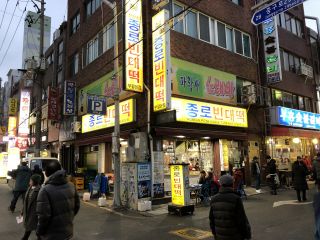 16時半、外出。両替、1万円=94000ウォン。ぐるぐるまわって、プピョン市場のチョンノピンデットクへ(17時半)。本当はポミルピンデットクのを食ってみたかったんだけど、第1日曜は休業なのでここで小手調べ。肉ピンデットクを注文(7000ウォン)。