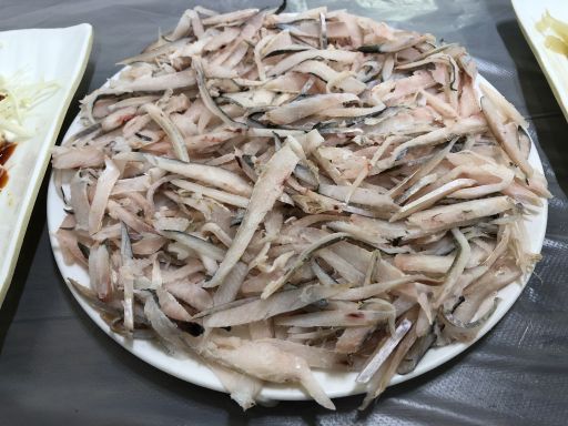 ウンオフェを2万ウォン分注文。冷凍モノでしたが、細~く切ってあるのでほどなくして柔らかくなって、脂感のある刺身となりました。うまかったです。ソジュはサービスで25000ウォンを支払い。 |