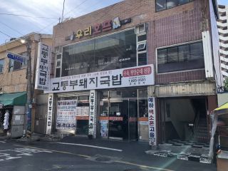 103バスでチャガルチ→ヨンジ1ドンアパート。キョトンブクッパ8:35着。テジクッパを注文(6000ウォン)。ハルメクッパと比較して、少々白濁、肉は薄く小さめでクッパとして食べるにはいい感じ、全体的に量は少なめ。プチュとセウジョを入れてかき混ぜると結構赤くなったので、タテギがすでに入っていたかも。朝早くから「ハルメクッパっぽい」テジクッパが食べられる店でした。 |