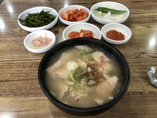 6時起床。7:40チェックアウト。ハルメクッパは日曜休みだし、チャンニョン食堂は第1・3日曜休で休みだし、でハルメクッパの兄弟店キョトンブクッパ(ヨンジドン)に行くことに。