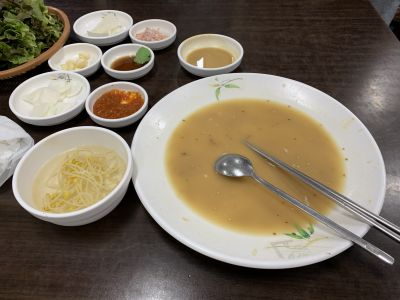 洗濯ものを広げて、9時外出。17バスでヨンジュドン→ポムゴク交差点。9時半ハルメクッパ着。でネジャンクッパを注文。「少なくしてください」とも。 |