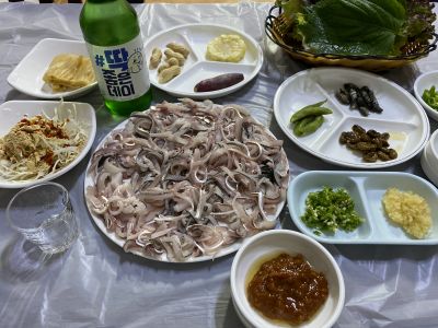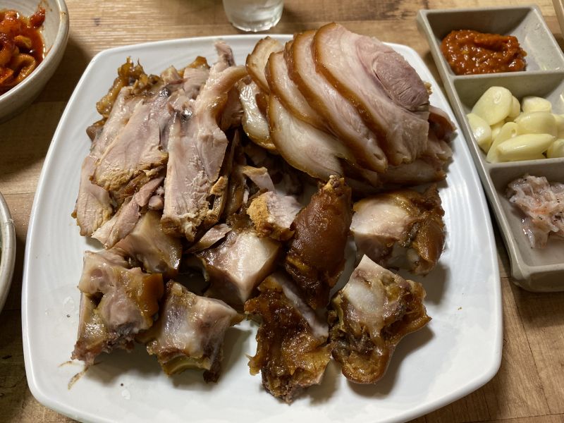 地下鉄でプサンジン→ヤンジョン、小走りでヨンシミ本店は・・・「オプソ」、アイグッ!すぐに引き返し、地下鉄でヤンジョン→チョリャン。でチョリャン駅からシンチョリャンまでの距離が長いこと。ソウル駅からの方が近かったかも。何もかもツイてないなぁ・・・とげんなり。でシンチョリャンチョッパル着(19時過ぎ)。小とソジュを注文(15000+3000ウォン)。ここの普通のは初めて→結果、普通でした。ここはまぁネンチェだけだなぁ・・・ |
