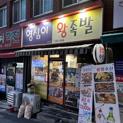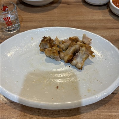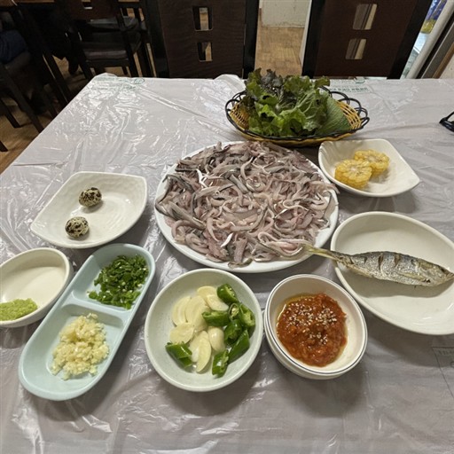 18時前にミョンジ市場着。日が長いのでこんな時間にもかかわらず明るく、道中のいつもの風景もよく見え、こんなだったのかと新たな発見もあった。市場の駐車場は満車でなかなかの入り。土曜は日曜より入りがいいのか?ぐるっと見て回って、18時、チャントフェッチプ着。チョノフェを注文。走りだからか脂乗り感はなくさっぱり系で、特に感動はなし。ほかのお客様があったからであろう、クイも1尾あり。ソジュ込み3万ウォン。 |