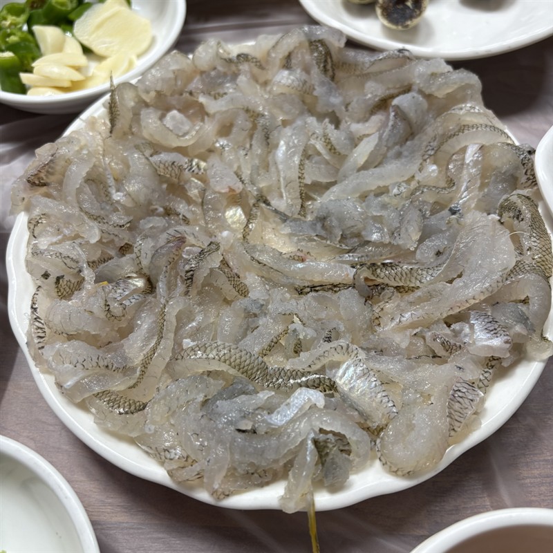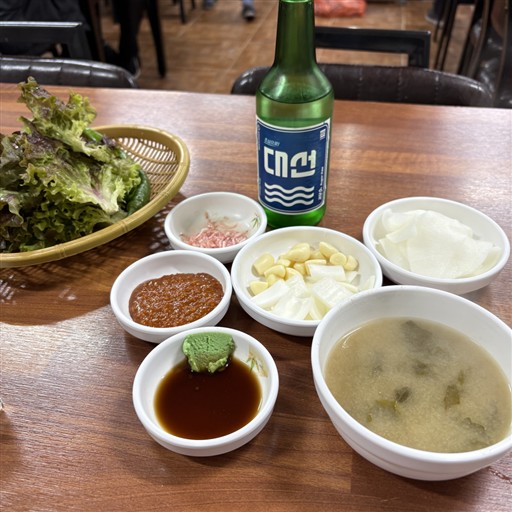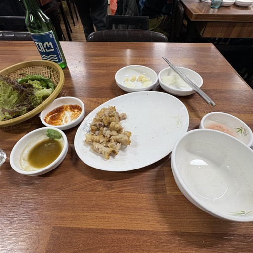 18時、チャントフェッチプ着。奥さんが私を見て「オモォ!」。サジャンニム不在で、コシレギフェをと言うと、入荷してないと。連絡くれたか?みたいなことを言うので、一週間前にカカオでコシレギを頼んだよと画面を見せると、サジャンニムに電話をしているもよう。あちゃ~いきなりかよ…と思いながらテーブルで待っていると、用意しますと。しばらくすると、他店のアジュマらしきが皿に盛ったコシレギフェを奥さんに渡し、それを出してくれた。セーフ!おいしくいただいた。ソジュとで3万ウォン。 |