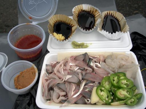 3日間とも小雨まじりの曇り空であまり暑くありませんでした。実は、禁酒&減量中だったので、当初はあまり韓国行のモチベーションが上がりませんでしたが、チョノ祝祭につられ、初めての酒なし海外旅行になりました。「酒なしの刺身って...」って心配してましたが、あまり気にならずチョノフェを味わえました。祝祭は、初日の無料配布を逃したのが痛かったかな。