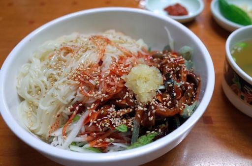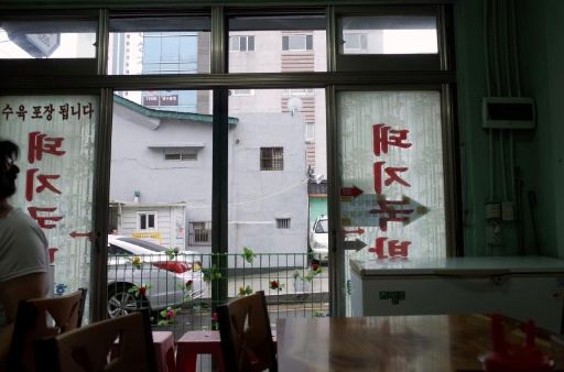 朝ご飯はトルゴレでごはんなしのスンドゥブチゲ(5000w)。チャガルチをまわって、プサンジンまでバス。チャンニョン食堂へ。朝からムッチムでソジュをやっているおっさん2人組がいて、少々うらやましく思いながら、フェグクス(5000w)を頼む。「グクス」の発音が悪いせいか、おばちゃんに「イルボンか?」と見破られるw。フェはチョノのようだ。うーん、でも今度来たら、目の前のおっさん2人組のように、朝からフェとソジュにしようと心に誓いながら量の多いククスを食らう。
