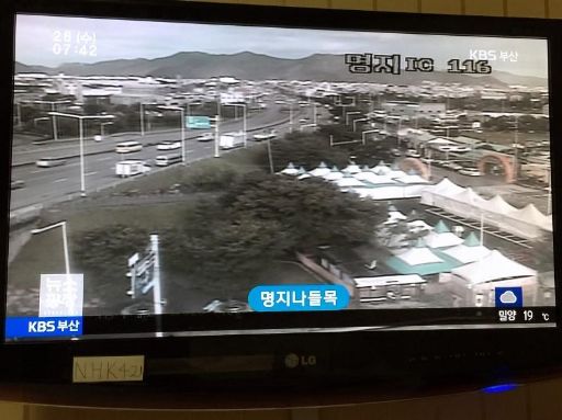 朝、KBSを見ていたら交通情報の画像でなんとミョンジ市場が出てくる(写真1)。8時過ぎチェックアウト。