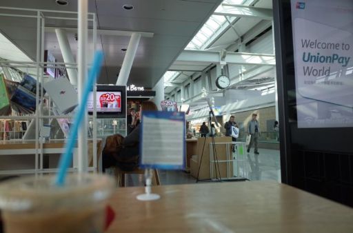 ところが、なんと、そのカウンターでは名古屋行きの手続きはできないと言われ、さらに伸びた列の最後に「並べ」だと。絶望感いっぱいのまま、結局、チェックインができたのが、8時50分。セキュリティーを通過できたのが、9時15分。最後にひどい目にあいました。フードエンパイヤーで、自分はスンドゥブチゲ、妻は、ビビンバを食べる。