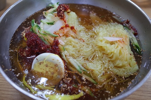 仏国寺駅到着後、まずは、釜山行きの電車の時間を確認する。11:58と12:58。11:58まではあと30分しかない。ちょっと無理かな。とりあえず、店を探しに行く。見つからない。それらしき店が見つからない。この前行った店がそうだったんじゃないか、と思い始めた時、仏国寺公設市場に入り込む。見回っていると「仏国寺ミルミョン」の看板が目に入る。「あった。見つけた。」店の外観は、以前見たビデオ通り。ちゃんと営業している。中に入ると、客はまずまず入っているが、満員まではずいぶん余裕がある。ミルミョンは3種類、そのうち一番普通そうなムルミルミョンを頼む。ビビンはあまり好みじゃないし、コチュ入りは辛そうだったし。うまかったぁ。おまけで付いてくる肉がまた香ばしくてうまい。リベンジ完了。