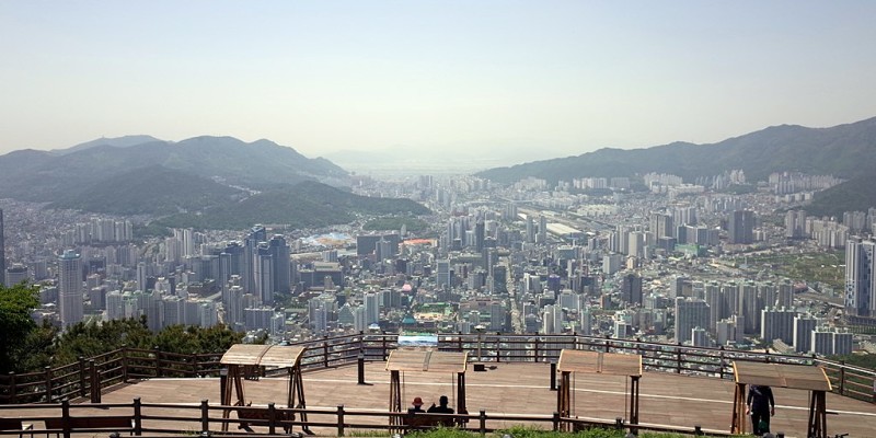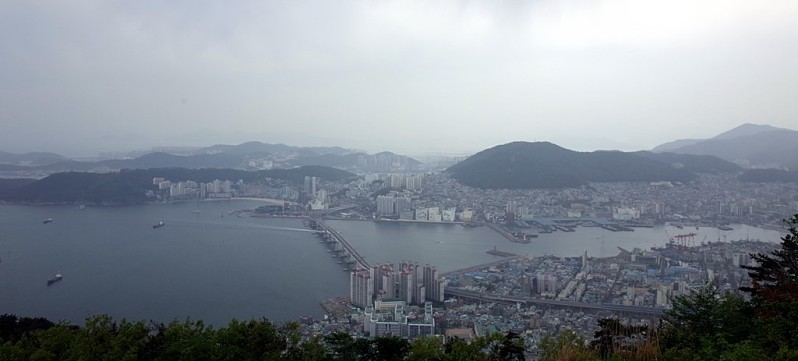 9番バスで再び影島へ。中腹道路を通り、旧ヘサゴで降りる。目の前に簡単な展望台があり、釜山港大橋が臨める(写真1)。蓬莱山に登るつもりであったが、道がよくわからず断念。マウルバス5番で戻り、チャガルチのインフォメーションで今晩の済州行きのフェリーを予約してもらい、蓬莱山、荒嶺山の登り方も聞く。
