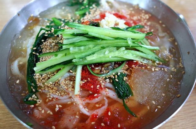 暑かったのでフェグクスでも食べようかとプサンジンまで行くが、チャンニョン食堂は閉まっていた。西面に移動し、キジャンソンカルグクスでネンカルグクス(5,000w)。ミルミョンより、ネンカルグクスの方が好みかな。