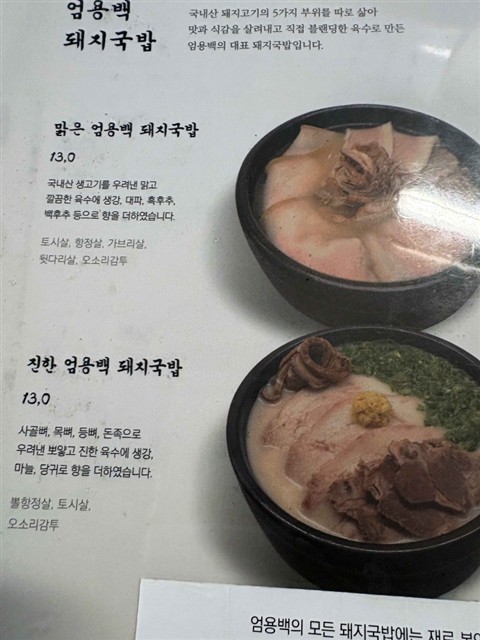 | メニューを見ると以前と変わっており、テジクッパ(13,000w)は4種類ある。 |