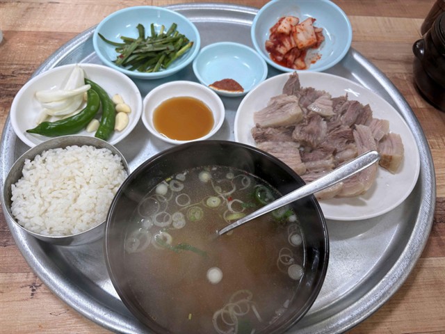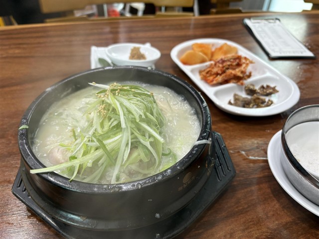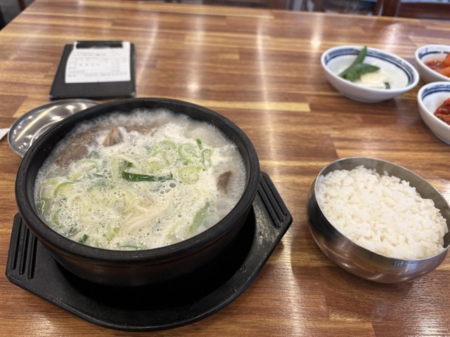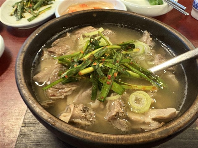 チェックアウトし、近くの南浦ソルロンタンへ。ソルロンタン10,000w。昨日のイジョ・ソルロンタンの方が、値段差分美味しかった。ここのソルロンタンはスープの味がすこし薄い。肉も昨日の方が良かった。 |