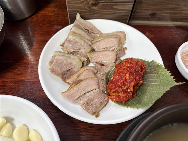 ネットをしながら時間をつぶし、10時過ぎにハルメクッパへ。すでに客が10人ほど入っている。奥の席に案内された。いつの間にかテーブルになっている。スベクは10,000wか。スベクを注文。ソースのせいなのか、肉自体の旨味なのか、肉が甘く美味しい。 |